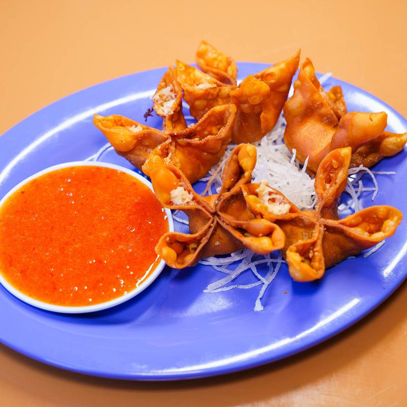 Fried vegetable wonton rolls drizzled with sweet chili sauce (3).
